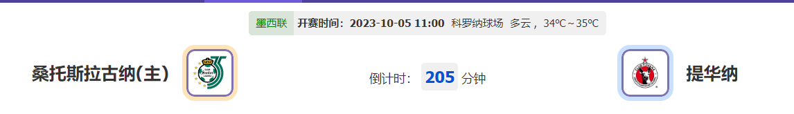 北京时间10月05日11时00分,墨西联第11轮的赛事,上轮联赛大放异彩的提华纳此番作客挑战桑托斯拉古纳,让我们拭目以待!