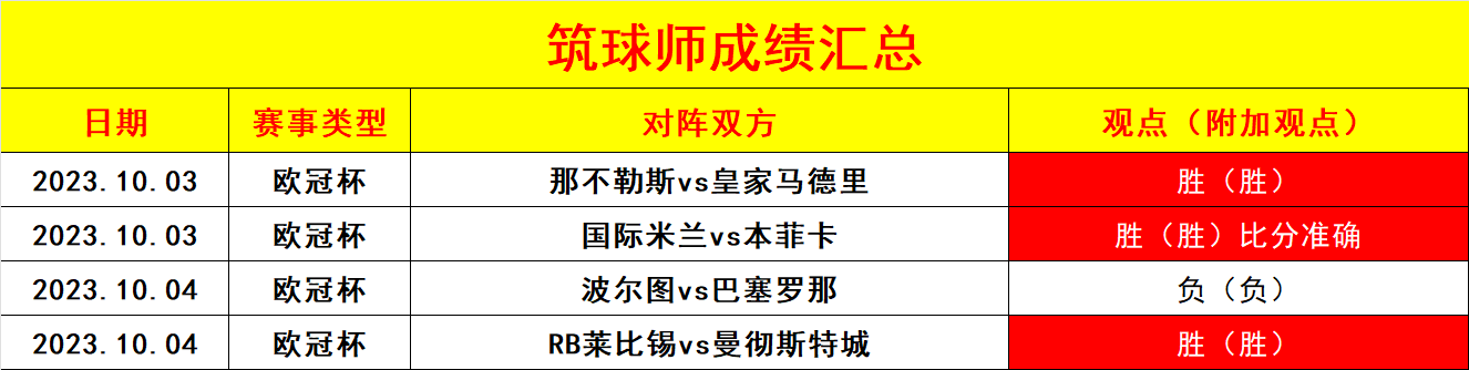 近两天送出4场欧冠的比赛,取得4胜3的成绩,虽然没有取得100%的胜率,但75%的胜率还是具备相当的参考价值;笔者今天继续会秉承宁缺毋滥的精神,只推有质量有信心的比赛而不是数量搭够,确保每一场比赛都有胜率的;今天笔者同样挑选出信心场次,希望大伙们可以一起与筑球师研究胜利的观点。