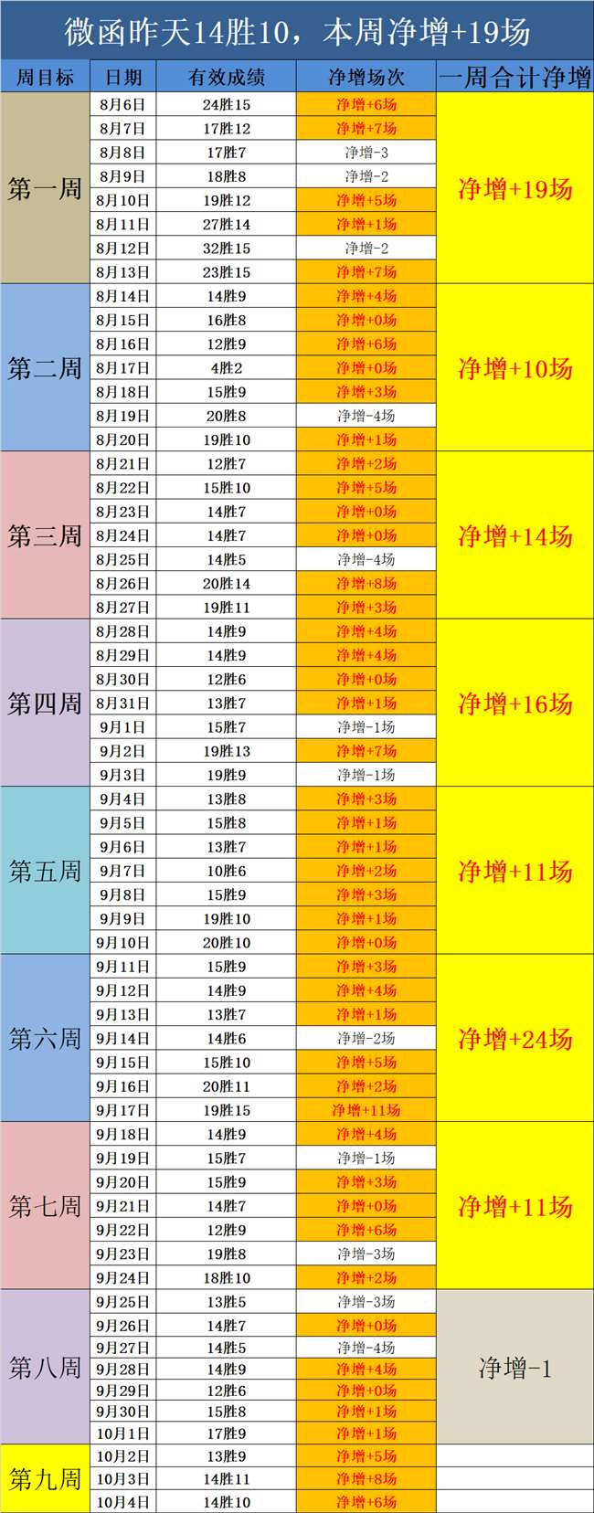 一、目标是以净增长为计划方向,净增长统计为有效胜负,打平视为无效,但可计入不败率。