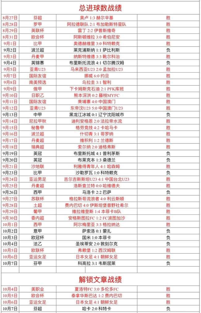 周六解锁文章1场没有打出,解锁文章3连胜被终结了!私推总进球数1场没有打出,近39胜28,成绩不俗!私推赞赏昨晚没有发送,依然近45胜30,状态稳定!今天解锁文章、赞赏、总进球数,三线全胜搞起来!鸡锅的私推多半都是小联赛,这些海外小联赛信息方向非常准确,经过近几年的耕耘,海外信息渠.道已经打通,到了丰收的时候了!起飞啦,老铁们!
