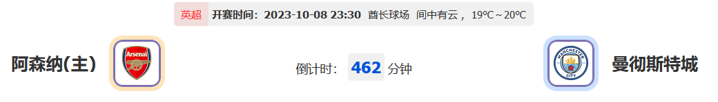 北京时间10月08日23时30分,英超联赛2023-2024赛季第8轮比赛,阿森纳主场迎战曼彻斯特城,双方再现了上季榜首之争的激烈程度,此战谁能夺得胜利分数将赛季复苏的托特纳姆热刺拉下榜首?让我们一起拭目以待!