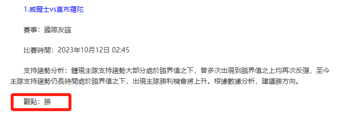【解鎖內容為以上賽事支持趨勢預測圖展示,以及根據分析預測圖進行相對低機率方向觀點判斷。解鎖內容僅代表個人知識領域觀點,與本網站無關】