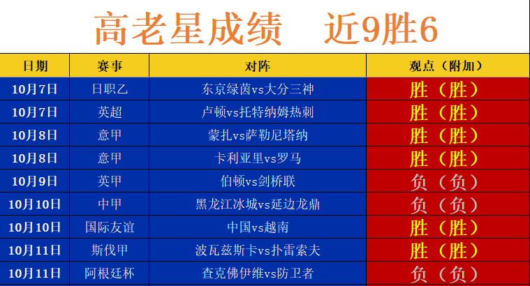 大家好!我是高老星。拥有十年体育数据分析征战生涯,积累过千场分析的标准案例,擅长从数据变化中寻找破绽,擅长联赛:中日韩澳+五大联赛,分析风格:从基本面探底结合内部数据变化追踪,权衡主客战绩分配偏重要点,如异常数据的实时变化和球队近况的组合拳分析,期待与你分享!