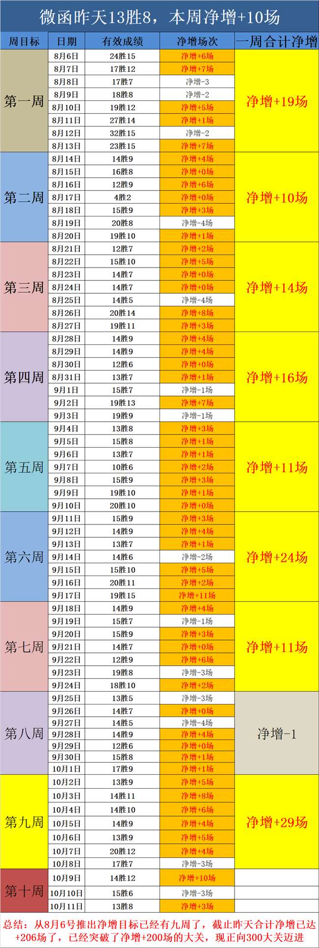 精彩分享:早上美洲赛事4场全胜,又打出了全胜的成绩,昨天整体打出了13胜8平的成绩,净增+3场,本周目前净增+10,截止目前,从8月6日至今,合计已经突破了206场,已经冲破200大关了,稳定的状态已经持续了2个月。