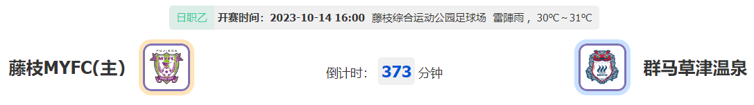 1、2023赛季日本职业联赛J2第32轮一场补赛打响,藤枝MYFC主场迎战群马草津温泉。日职乙共22支球队,以主客场双循环作赛,联赛前2名直接升级,3-6名参加升级附加赛,后2名直接降级。藤枝MYFC上赛季获得日丙联赛亚军,从而直接升入日职乙;作为本赛季日职乙升班马,球队迄今表现不错,上轮联赛客场1-5不敌长崎成功丸,结束了此前联赛2胜2平的不错战绩,目前12胜9平16负积45分排名日职乙第14位,球队进攻尚可但防守十分糟糕,场均失1.73球为联赛第一多。