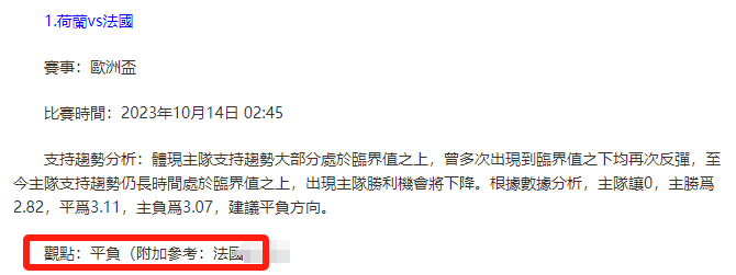 【解鎖內容為以上賽事支持趨勢預測圖展示,以及根據分析預測圖進行相對低機率方向觀點判斷。解鎖內容僅代表個人知識領域觀點,與本網站無關】