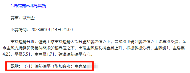 【解鎖內容為以上賽事支持趨勢預測圖展示,以及根據分析預測圖進行相對低機率方向觀點判斷。解鎖內容僅代表個人知識領域觀點,與本網站無關】