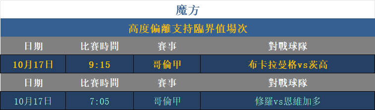 利用「魔方關系」進行支持趨勢預測分析,超越臨界數值之上可視為低機率方向,此方式對比賽方向分析有顯著幫助效果。