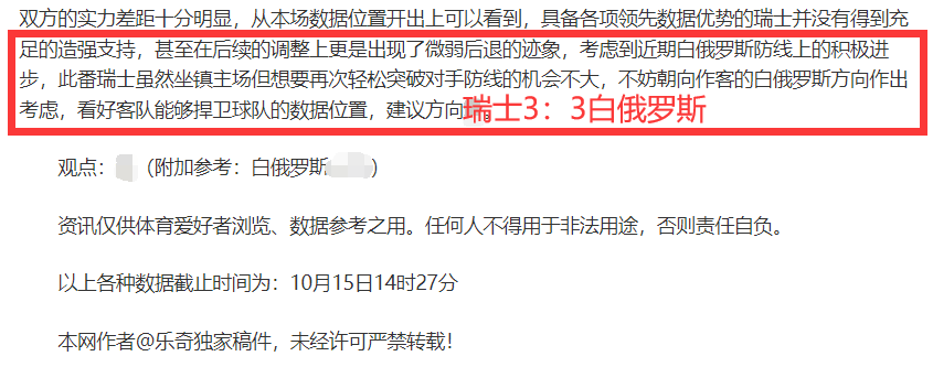 (温馨提示:观点回顾为已完场赛事的统计,并不能代表未来的观点预测结果走势,观点仅为其个人意见,与平.台无关。资讯仅供体育爱好者浏览,并不构成购.彩建议,任何人不得用于非法用途,请广大用户理性消费。)