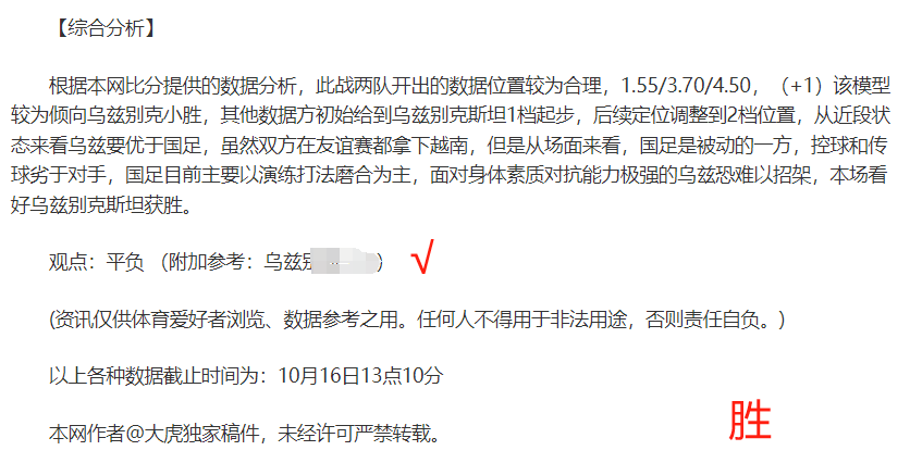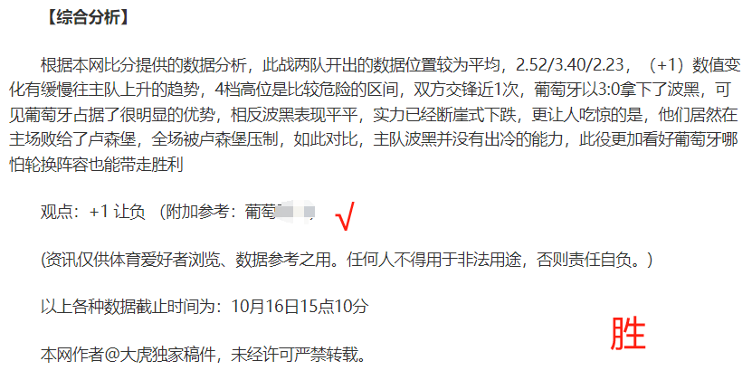 (温馨提示:观点回顾为已完场赛事的统计,并不能代表未来的观点预测结果走势,观点仅为其个人意见,与平.台无关。资讯仅供体育爱好者浏览,并不构成购.彩建议,任何人不得用于非法用途,请广大用户理性消费。)