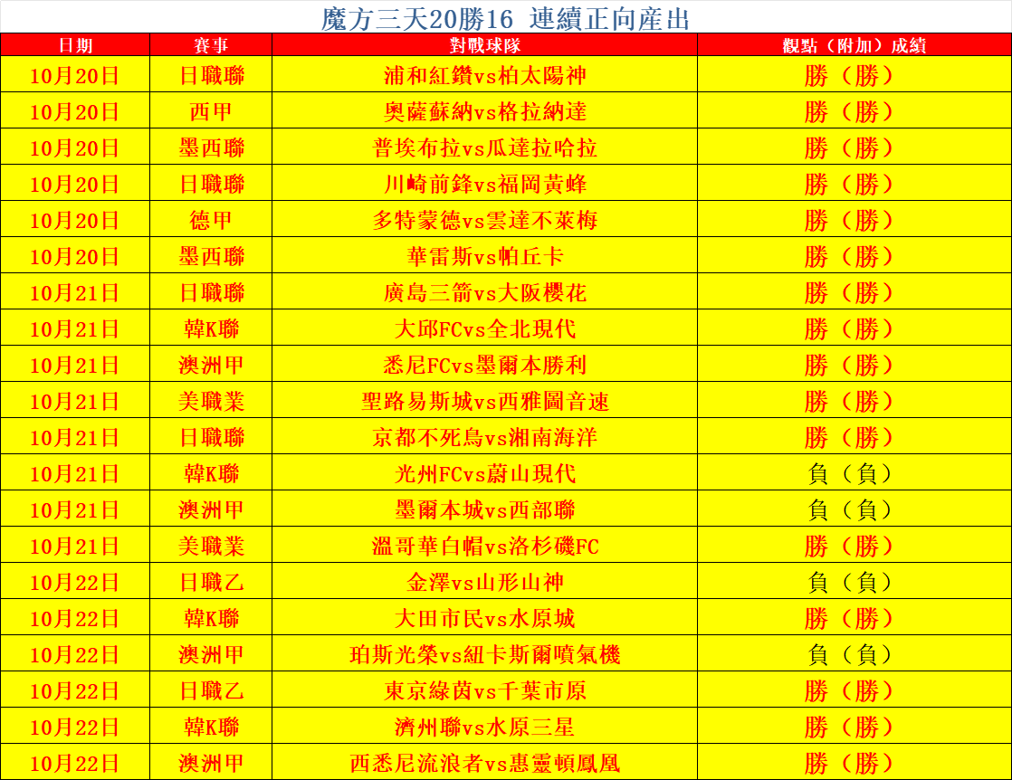 魔方連續正向産出,3天打出20勝16!接下來魔方將會不斷努力務求精益求精!今日對亞賽、意甲、以及美賽進行深研。