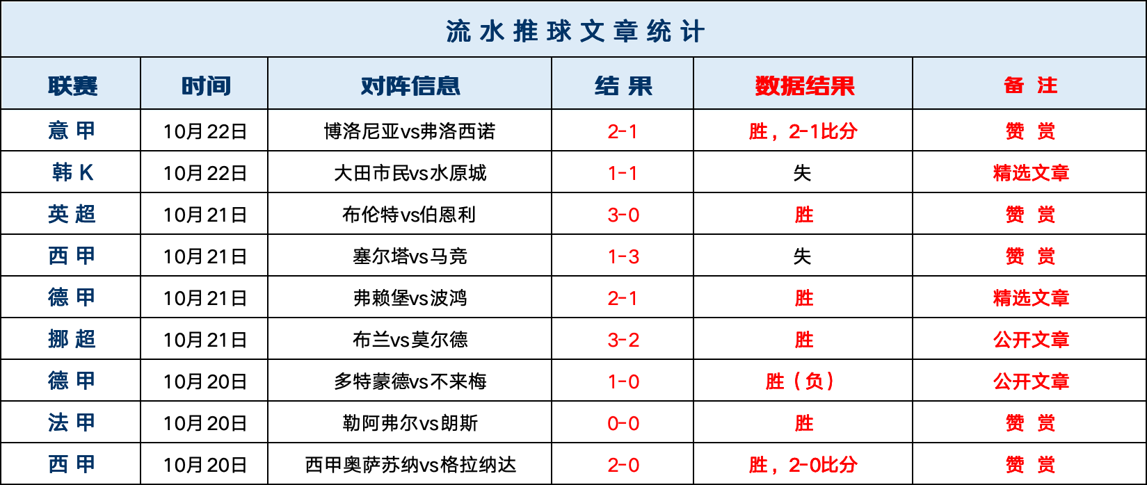 赞赏回顾:流水赞赏昨天1胜1失,布伦特3-0伯恩利+公开文章方向跑出!流水赞赏曾连续6周周榜第一,更是有156天总体正确率近7成(不含走)的长期稳定发挥,今天继续一起采摘果实!!!