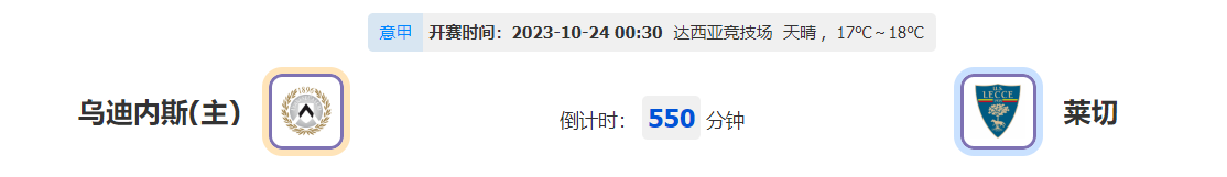 北京时间2023年10月24日 00时30分,意甲联赛第9轮的赛事,乌迪内斯一胜难求,此番被数据看好能否有所作为?让我们一起期待!
