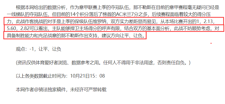 (温馨提示:观点回顾为已完场赛事的统计,并不能代表未来的观点预测结果走势,观点仅为其个人意见,与平.台无关。资讯仅供体育爱好者浏览,并不构成购.彩建议,任何人不得用于非法用途,请广大用户理性消费。)