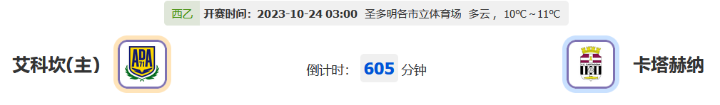 北京时间10月24日03:00,西乙联赛2023-2024赛季第12轮比赛,艾科坎vs卡塔赫纳,两队目前在联赛都是处于降级区苦苦挣扎的队伍,此番的菜鸡互啄谁能得到胜利女神的青睐?让我们一起关注!