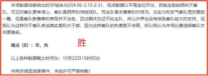 揽圣10月4日至10月9日豪取18连胜。昨天西甲打出,近期状态虽有些落差,但没关系,笔者能够快速恢复,今天我们再接再厉。足球比赛是追求长期的稳定,长期的关注才能得益,一时的下滑并不意味着失败,大家不要因为一时的下滑而放弃关注,笔者会努力挖掘更精准的赛事分享给大家,感谢大家的支持。