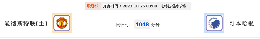 北京时间2023年10月25日03:00,2023-2024 欧洲联赛冠军杯赛,曼彻斯特联vs哥本哈根,此役是欧冠杯分组赛A组第3轮的较量。曼彻斯特联上轮主场2-3不敌加拉塔萨雷,两轮皆负小组垫底,此役继续坐镇主场老特拉福德球场迎战哥本哈根,两队将如何对峙?下面由本作者为大家做详细阐述。