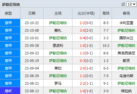 1、上季萨勒尼塔纳排名第15,本季他们仍然难以取得突破,目前战罢了9轮,球队的战绩不过是4平5负,仅以4分排名联赛倒数第二。