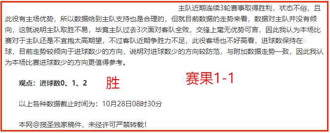 (温馨提示:观点回顾为已完场赛事的统计,并不能代表未来的观点预测结果走势,观点仅为其个人意见,与平.台无关。资讯仅供体育爱好者浏览,并不构成购.彩建议,任何人不得用于非法用途,请广大用户理性消费。)