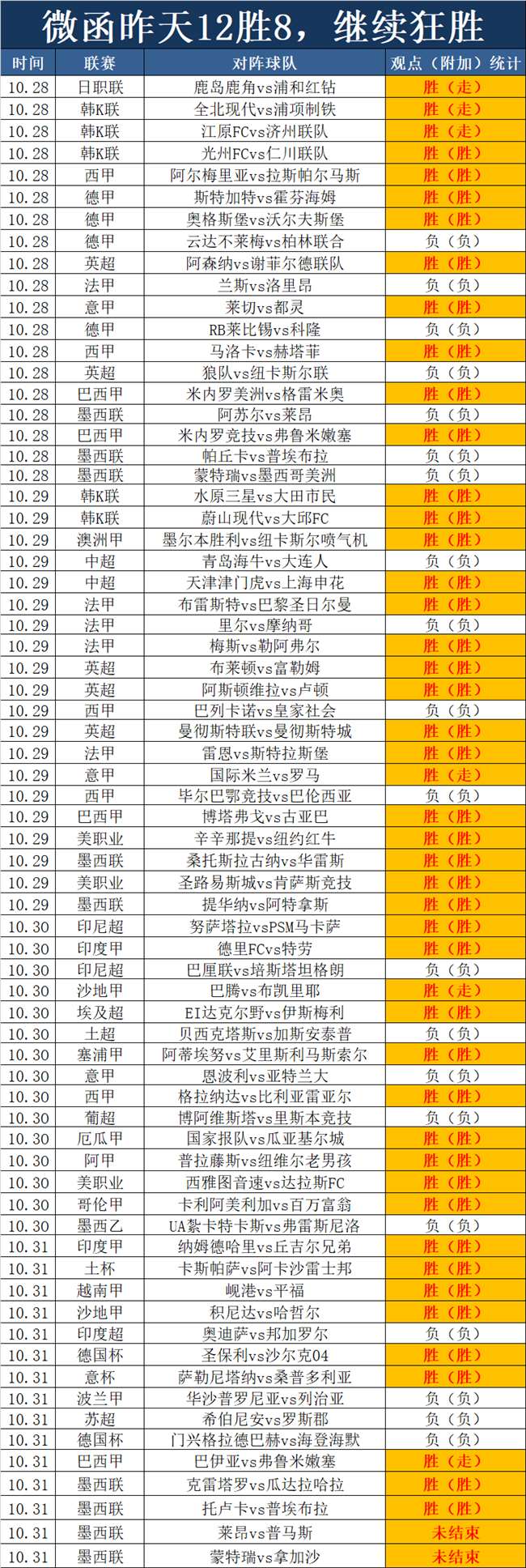 1、昨天又是狂胜,狂胜势头已经持续了8天,连续8天狂胜,昨天12胜8,净增+4场,还有2场墨西联未结束,昨天的早场依旧保持狂胜的状态,早场5胜4,今天早场继续冲刺。