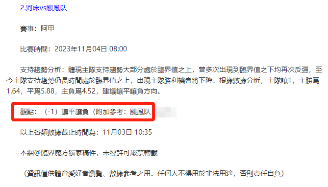 【解鎖內容為以上賽事支持趨勢預測圖展示,以及根據分析預測圖進行相對低機率方向觀點判斷。解鎖內容僅代表個人知識領域觀點,與本網站無關】