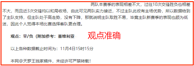 (温馨提示:观点回顾为已完场赛事的统计,并不能代表未来的观点预测结果走势,观点仅为其个人意见,与平.台无关。资讯仅供体育爱好者浏览,并不构成购.彩建议,任何人不得用于非法用途,请广大用户理性消费。)