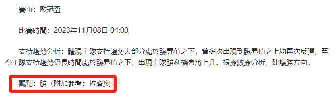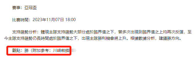 【解鎖內容為以上賽事支持趨勢預測圖展示,以及根據分析預測圖進行相對低機率方向觀點判斷。解鎖內容僅代表個人知識領域觀點,與本網站無關】