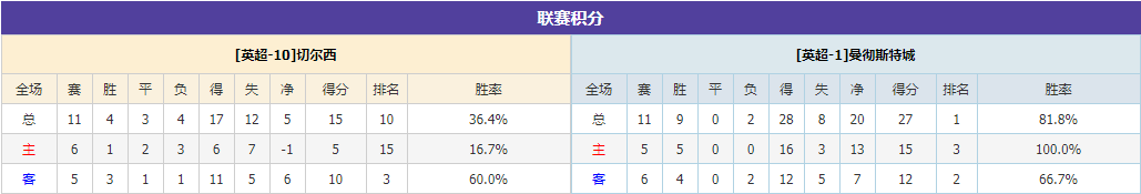 北京时间11月13日的凌晨00点30分,英超联赛的第12轮赛事的末组对决即将上演一场焦点大战!——传统老牌豪门切尔西将会坐镇斯坦福桥球场迎战“卫冕冠军”曼彻斯特城!近期带着五连胜且在进攻端火力全开的蓝月亮能否反客为主延续胜利的步伐?还是近期整体状态得到回勇的切尔西能够在主场优势下硬撼强敌?下面将由Yoyo姐将为大家带来详细的赛事分析: