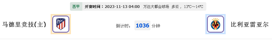 北京时间2023年11月13日04:00,2023-2024 西班牙甲组联赛,马德里竞技vs比利亚雷亚尔,此役是西甲赛新赛季第13轮的较量,马德里竞技上轮联赛客场1-2不敌拉斯帕尔马斯,止步此前6轮连胜,此役坐镇主场万达大都会球场迎战比利亚雷亚尔,两队如何对峙?下面由本作者为大家做详细阐述。