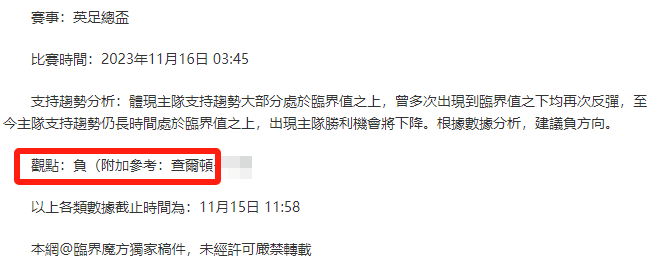【解鎖內容為以上賽事支持趨勢預測圖展示,以及根據分析預測圖進行相對低機率方向觀點判斷。解鎖內容僅代表個人知識領域觀點,與本網站無關】