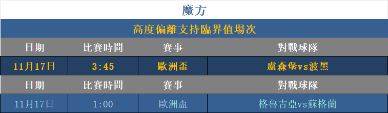 利用「魔方關系」進行支持趨勢預測分析,超越臨界數值之上可視為低機率方向,此方式對比賽方向分析有顯著幫助效果。