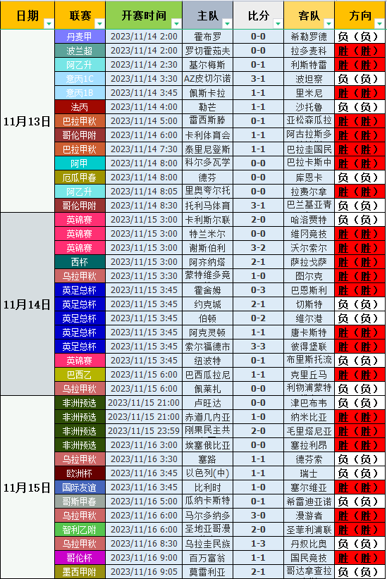 有只关注组合的老铁可以只关注欧洲数据和力度数据的数据即可,因为在以往的文章中,欧洲数据和力度数据的方向方向跑出的情况是非常高的,而鉴于数值的问题,这就需要各位老铁自己选择了!另外自2023年11月1日起,文章数据将会发生改变:①为了争取更多的胜利,今后整数数据将尽量不会被写入方向栏目!②每篇文章数量维持3~5场左右!③更多数据将会持续开发!