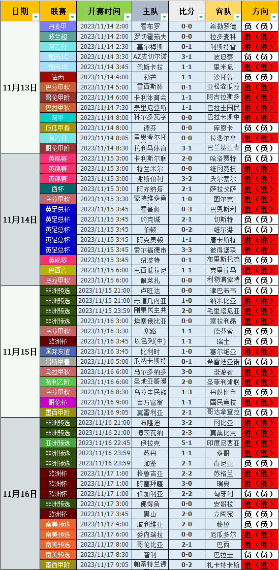有只关注组合的老铁可以只关注欧洲数据和力度数据的数据即可,因为在以往的文章中,欧洲数据和力度数据的方向方向跑出的情况是非常高的,而鉴于数值的问题,这就需要各位老铁自己选择了!另外自2023年11月1日起,文章数据将会发生改变:①为了争取更多的胜利,今后整数数据将尽量不会被写入方向栏目!②每篇文章数量维持3~5场左右!③更多数据将会持续开发!