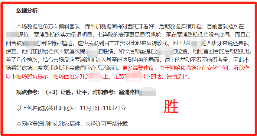 3、观点建议没有局限性,胜负以及进球均以大方向和胜率为主。