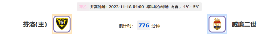 北京时间11月18日04:00,2023-2024 荷兰乙组联赛,芬洛vs威廉二世,两队在联赛上排名有所差距,今天比赛谁能更胜一筹呢?