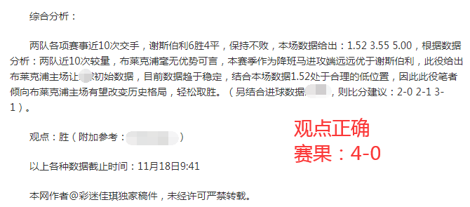 温馨提示:观点回顾为已完场赛事的统计,并不能代表未来的观点预测结果走势,观点仅为其个人意见,与平.台无关。资讯仅供体育爱好者浏览,并不构成购.彩建议,任何人不得用于非法用途,请广大用户理性消费。