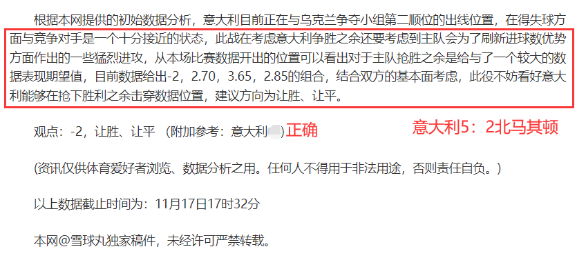 (温馨提示:观点回顾为已完场赛事的统计,并不能代表未来的观点预测结果走势,观点仅为其个人意见,与平.台无关。资讯仅供体育爱好者浏览,并不构成购.彩建议,任何人不得用于非法用途,请广大用户理性消费。)