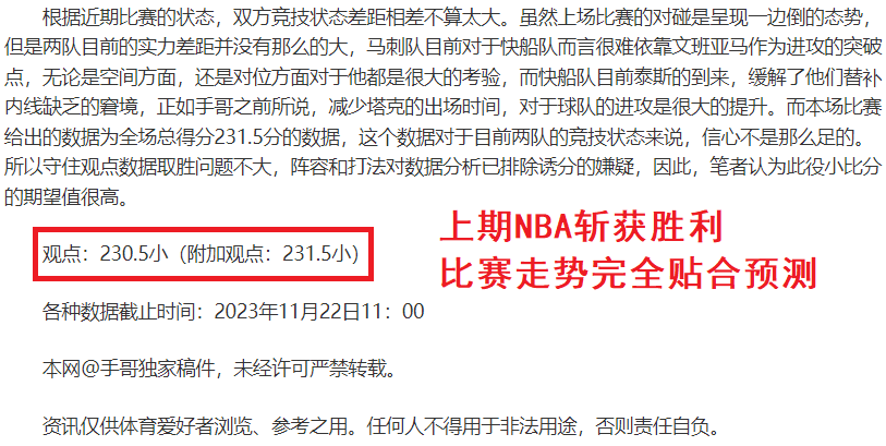 赛事回顾:近期4胜3,状态火热。手哥今日继续世界主力赛事,NBA再续火热状态,演算优越胜率再分析精彩赛事!运用大量篮球知识演算赛事分享给大家,手哥近期状态火热,此前CBA11连胜,菲MPBL11连胜,以及近期的七月份和十月份的9连胜足以证明实力!专业的赛事分析有目共睹!深度调整过后将奉上精彩的赛事情报!紧随手哥的步伐,收获胜利并非难事!