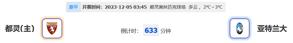 北京时间2023年12月05日03时45分,意甲联赛2023-2024赛季第14轮比赛,都灵vs亚特兰大,都灵近期联赛抢分进度缓慢,连续作客抢胜失败之下回到主场能否得到调整?亚特兰大目前积分进度同样缓慢,相距联赛欧战排名存在不少差距,今晚作客能否拿下关键积分重新回归联赛的准一线梯队?让我们一起期待!
