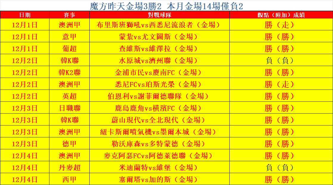 魔方昨天金場3戰2勝,早場專場清版全勝!整體再産正值。本月金場打出1,4場負2場的穩定成績!接下來魔方將會不斷努力務求精益求精!今日對德國盃、英錦賽以及哥倫甲進行深研。