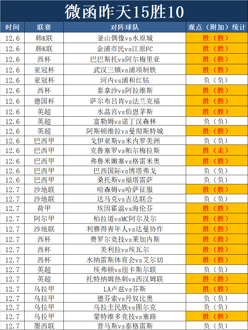 1、昨天再次狂胜,打出了10场正确观点,昨天15胜10,昨天继续保持净增长,本周目前保持净增+12场。