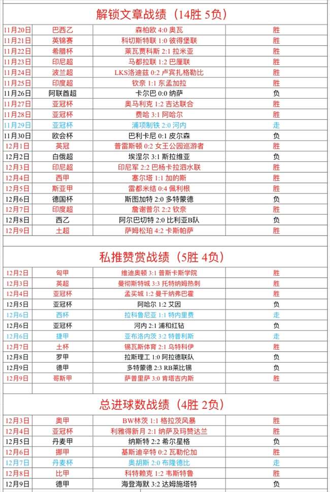周六解锁文章1场完美全胜拿下,解锁文章近19胜14,状态出色!公推1场稳稳胜利拿下,公推近34胜26,非常强势!私推赞赏2场,结果1胜1负,选场还需更冷静!私推总进球数1场没有打出,判断失误,总进球数近6胜4!