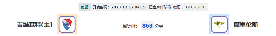 北京时间12月12日04:15,2023-2024 葡萄牙超级联赛,吉维森特vs摩里伦斯,两队目前处于联赛中下游位置,今天比赛到底谁能更胜一筹?