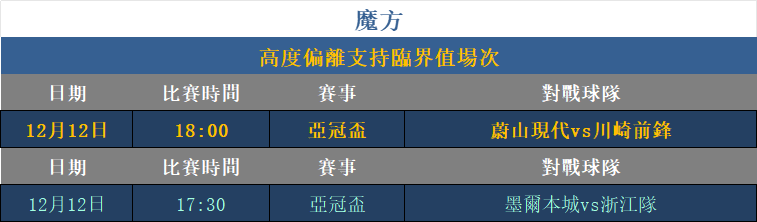 利用「魔方關系」進行支持趨勢預測分析,超越臨界數值之上可視為低機率方向,此方式對比賽方向分析有顯著幫助效果。