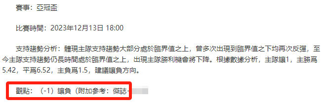 【解鎖內容為以上賽事支持趨勢預測圖展示,以及根據分析預測圖進行相對低機率方向觀點判斷。解鎖內容僅代表個人知識領域觀點,與本網站無關】