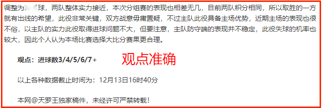 (温馨提示:观点回顾为已完场赛事的统计,并不能代表未来的观点预测结果走势,观点仅为其个人意见,与平.台无关。资讯仅供体育爱好者浏览,并不构成购.彩建议,任何人不得用于非法用途,请广大用户理性消费。)