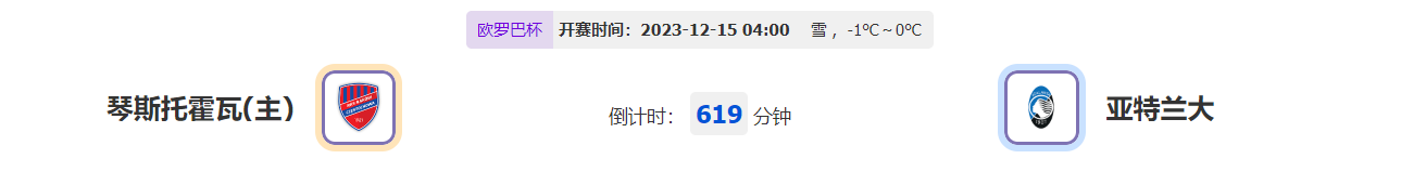 北京时间12月15日04:00,欧罗巴杯第6轮,对阵双方分别是主场的琴斯托霍瓦和客场的亚特兰大,琴斯托霍瓦表现起伏不定,而亚特兰大状态仅是刚好上升,目前抗衡底气不足,本场有机会反客为主?