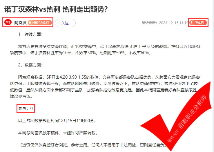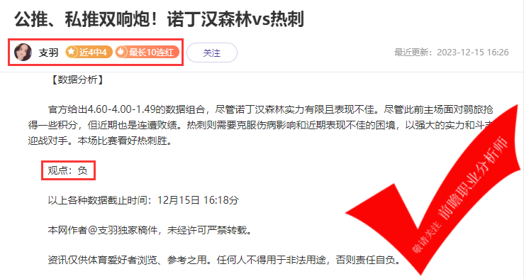 (温馨提示:宣传内容仅对作者的观点作回顾,不承诺也不代表未来的作者观点走势,且作者观点仅为其个人意见,与平台无关。同时,平台资讯仅供体育爱好者浏览,并不构成购彩建议,任何人不得用于非法用途。)
