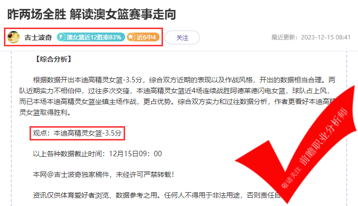 《对体育竞技赛事有独特见解,擅长分析开赛前数据变动的原因》
