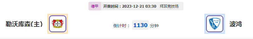 北京时间2023年12月21日03:30,2023-2024 德国甲组联赛,勒沃库森vs波鸿,此役是德甲新赛季第16轮的较量。主队勒沃库森上轮联赛主场3-0零封法兰克福,新赛季延续上佳状态,此役坐镇主场拜耳竞技场迎战波鸿,两队将如何对峙?下面由本作者为大家做详细阐述。